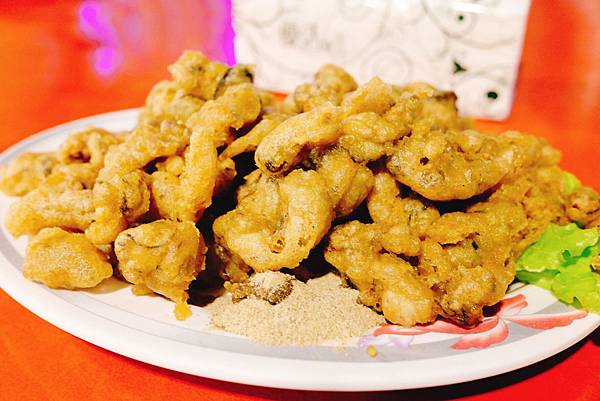 早在旅遊金門前,就聽友人說新大廟口活海鮮的三國烤魚好吃!那時便對三國烤魚心嚮往之。幸運地,我們這次住的海福大飯店,剛好就在新大廟口活海鮮的隔壁!新大廟口的好處是標價清楚,不會像有些店沒標價,結帳時反令人錯愕(聽導遊說金門有家店是這樣,但因為好吃,所以大家仍慕名而來)(忘記店名了)炸蚵仔 這裡的蚵仔是小蚵仔,也不若我們平常吃的蚵仔有股腥味,反而家人們對金門的蚵仔評價較高呢!這倒菜的缺點大概就是吃完會胖死吧!炸皮太厚了,邊吃罪惡感急升喉頭。肥腸